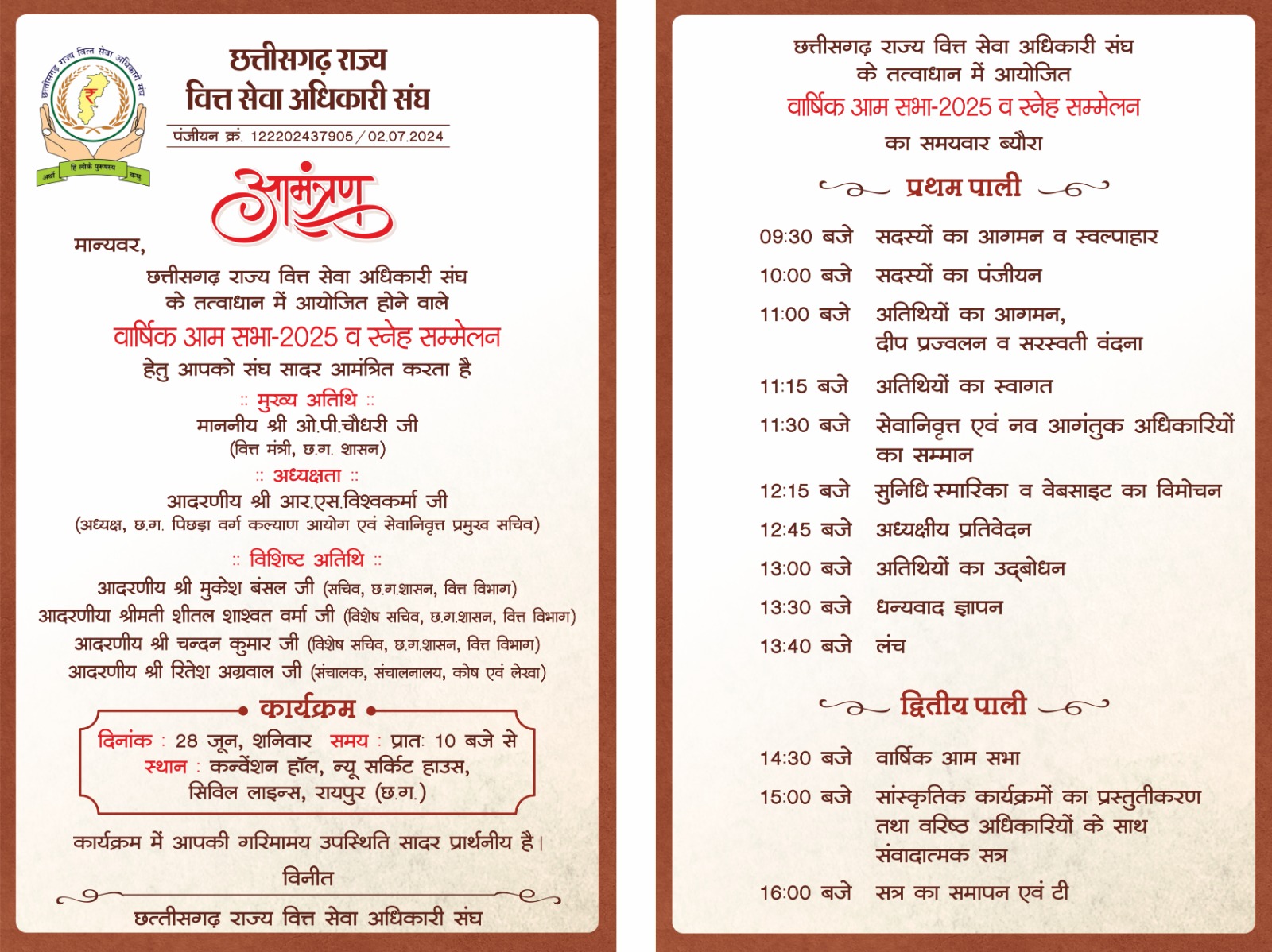 वार्षिक आम सभा एवं स्नेह सम्मलेन दिनांक 28 जून 2025